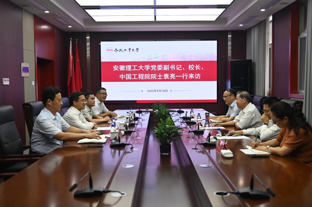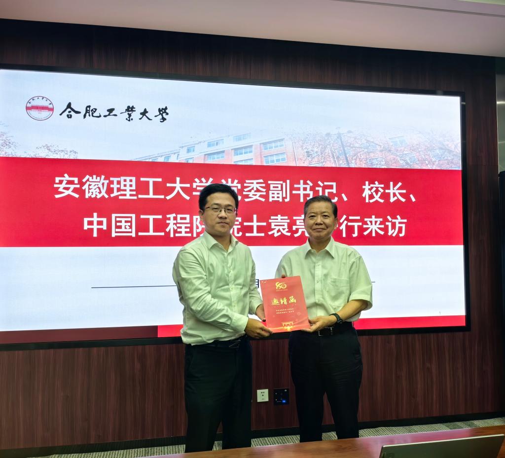 袁亮对合肥工业大学的热情接待表示感谢,介绍了学校80周年校庆工作的筹备情况和阶段性进展。他表示,安徽理工大学与合肥工业大学同根同源,在80年的发展历程,两校始终坚持弘扬优良的办学传统,持续推进教学科研、人才培养等领域的交流合作,共同为我国高等工科教育做出了卓越贡献。希望以庆祝建校80周年为契机,在活动策划、校友联动、文化展示等方面多向合肥工业大学学习,双方合力办好一场有高度、有温度、有影响力的校庆盛典。