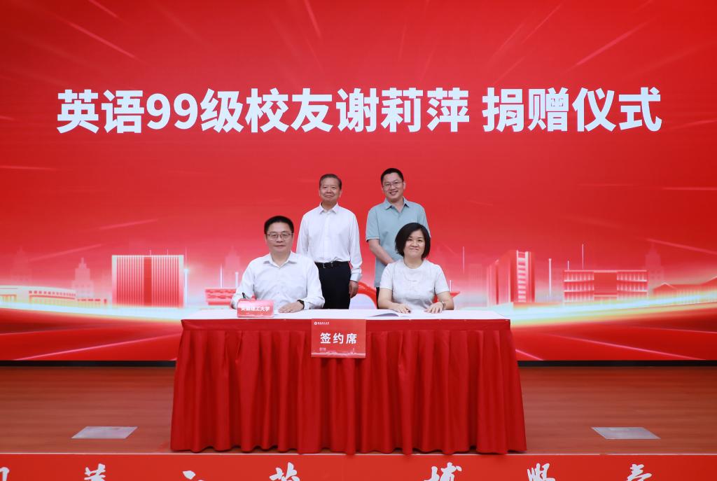 余玉刚与谢莉萍校友、黄时进校友签订捐赠协议。