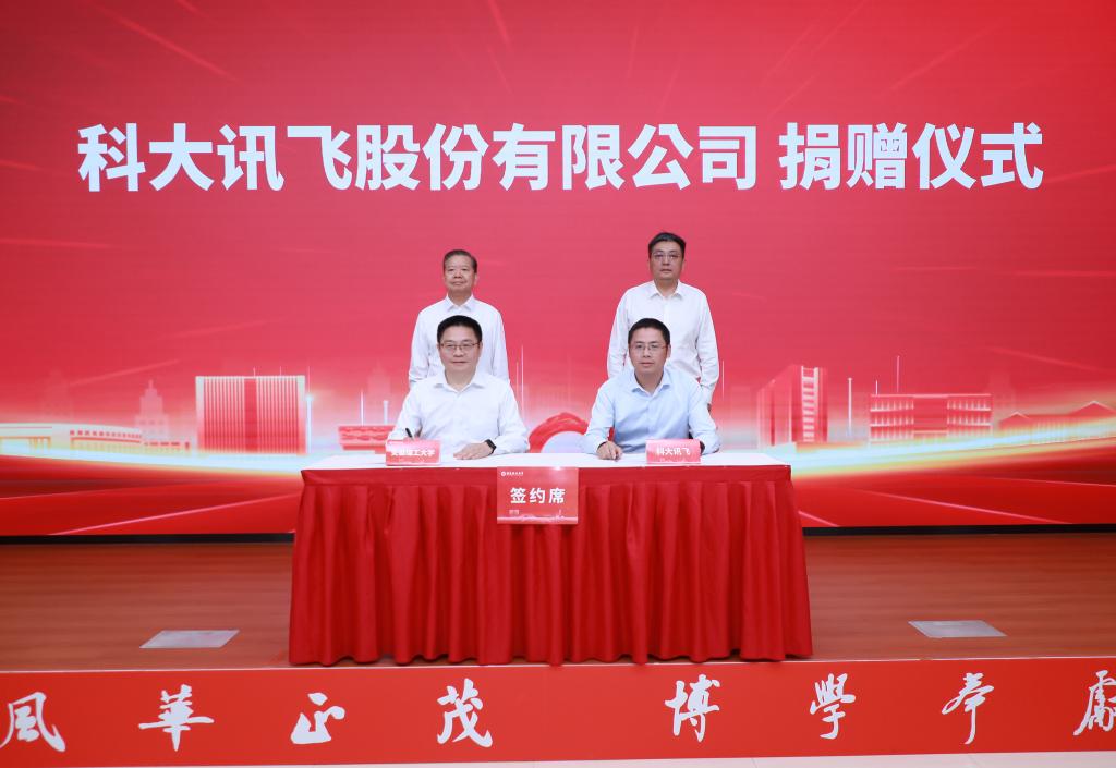 在袁亮、科大讯飞高级副总裁张友国共同见证下,余玉刚与科大讯飞安徽大区执行总经理徐军签订捐赠协议。