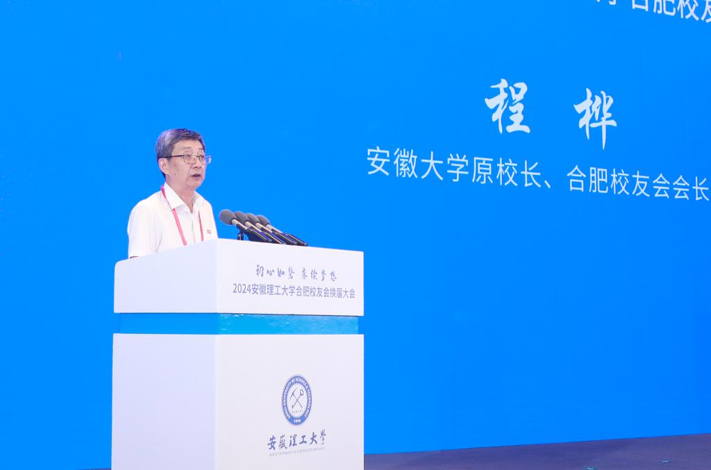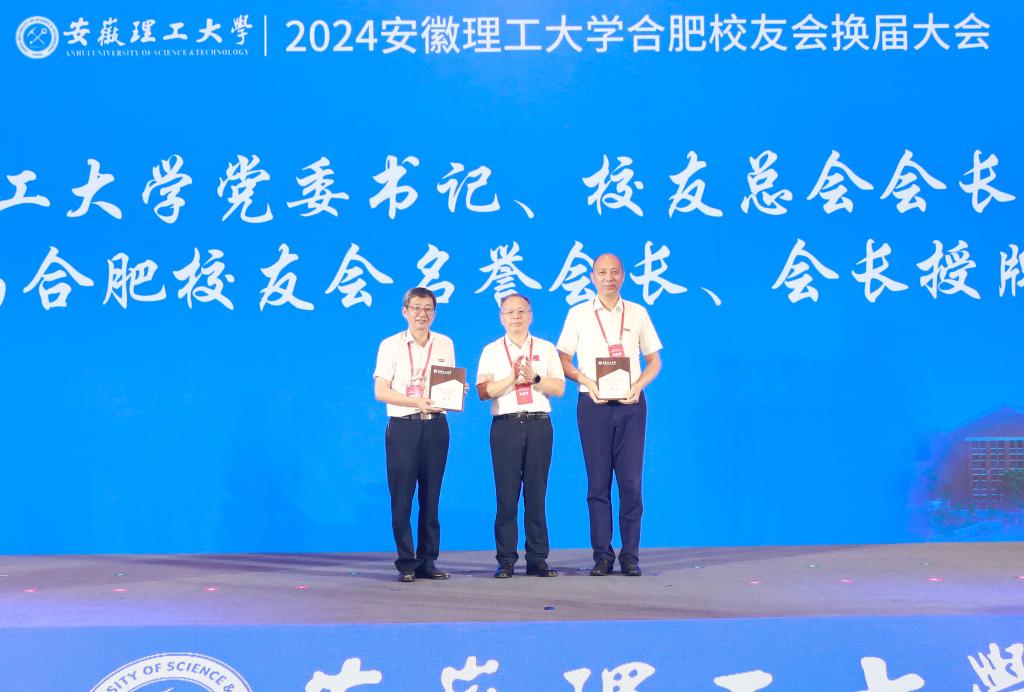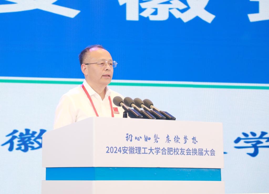 郭永存指出,安徽理工大学是安徽省第一所工科高校,与合肥工业大学同根同源。学校人才辈出、名师荟萃,5位本科毕业生当选中国工程院院士,引培中国工程院院士2人,为国家和社会培养了34万余名英才。学校超前识变、积极应变、主动求变,第七次党代会提出创建“双一流”战略目标,得到省委省政府高度重视和大力支持,在教育部第五轮学科评估实现省属高校A类学科零的突破。郭永存表示,安徽理工大学推深做实“四个融入”发展战略,形成鲜明办学特色。学科建设筑峰扬势,4个学科进入ESI世界排名前1%;学校生源质量持续向好,一批创新班、卓越班、产教融合班助力科教融汇、产教融合、医工交叉人才培养;双创教育成果突出;毕业生就业率连续位列全省高校前列,2023届就业率超95%,毕业生留皖率不断提升;科创平台贯通成势,拥有国家、教育部、安徽省等创新平台50个,获批全国重点实验室、深部煤矿采动响应与灾害防控国家重点实验室获中组部、中宣部、人社部、科技部联合表彰为全国专业技术人才先进集体;科研水平显著增强,得到省委省政府高度认可。郭永存强调,校友是母校最宝贵的“品牌”资源、“育人”资源、“智力”资源。长期以来,一大批校友或通过捐资助学、奖学奖教,或与母校合作开展人才培养、科技创新等各种方式,支持、关心、帮助母校建设与发展。合肥是聚集校友最多、校友分布行业最广的地区,是国内重要的科技创新中心之一。希望合肥校友会以感情为纽带、以服务为核心、以共赢为基础,当好联络员、服务员、宣传员,施展才干,更好发展,筑牢合肥校友精神家园,为校友成长、母校建设、安徽的经济社会发展乃至长三角区域经济社会发展再建新功。