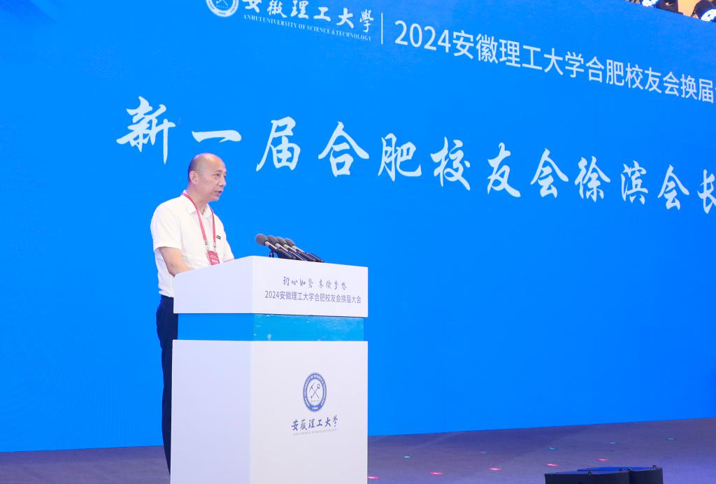 徐滨代表新一届合肥校友会致辞,他表示,当选新一届安徽理工大学合肥校友会会长,责任重大、使命光荣,新一届校友会将不断创新工作方式,努力构建更加团结、紧密、活跃的校友会。为校友提供一个更好的交流合作的平台,增进校友之间的感情,促进校友与母校之间的联系;建立健全长效机制,建立副会长轮值制度,促进校友会规范建设和有序运行;成立“合肥校友之家”,为校友事业发展推波助澜,努力构建校友精神家园;充分发挥校友会在母校发展中的推动作用;融入地方经济,通过成立合肥校友企业联盟,倡导同心同德、共生共赢理念,凝聚校友力量,打造“母校+校友+联盟”新模式,积极为母校与政府、企业、社会之间的沟通联系牵线搭桥,开展全方位、深层次、实质性的合作;充分发挥校友的资源优势,把校友经济打造成一种平台经济,为校友创造财富,为学校创造价值,为社会创造机遇。
