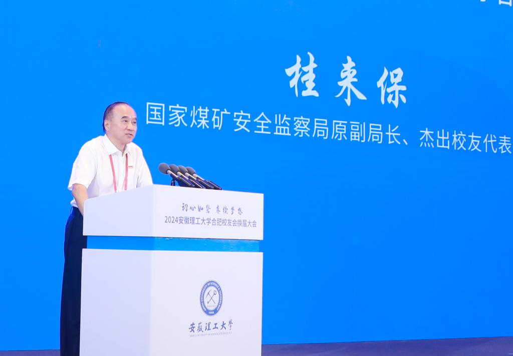 采煤79级校友、国家煤矿安全监察局原副局长桂来保致辞。他深情地回顾了在母校的求学岁月及个人工作经历。他表示,近年来,全体“安理人”团结奋进、守正创新、自信自强、追求卓越,学校发展取得的成就令校友感到无比自豪。校友会不仅仅是回忆过往、聚会叙旧的组织,更是校友交流思想、分享经验、凝聚力量的平台。期待合肥校友会继续加强校友之间的联络与沟通,积极推动校友与母校的合作与交流,培养年轻校友的成长与发展,建好我们共同的家园,?共同创造更加美好的未来!