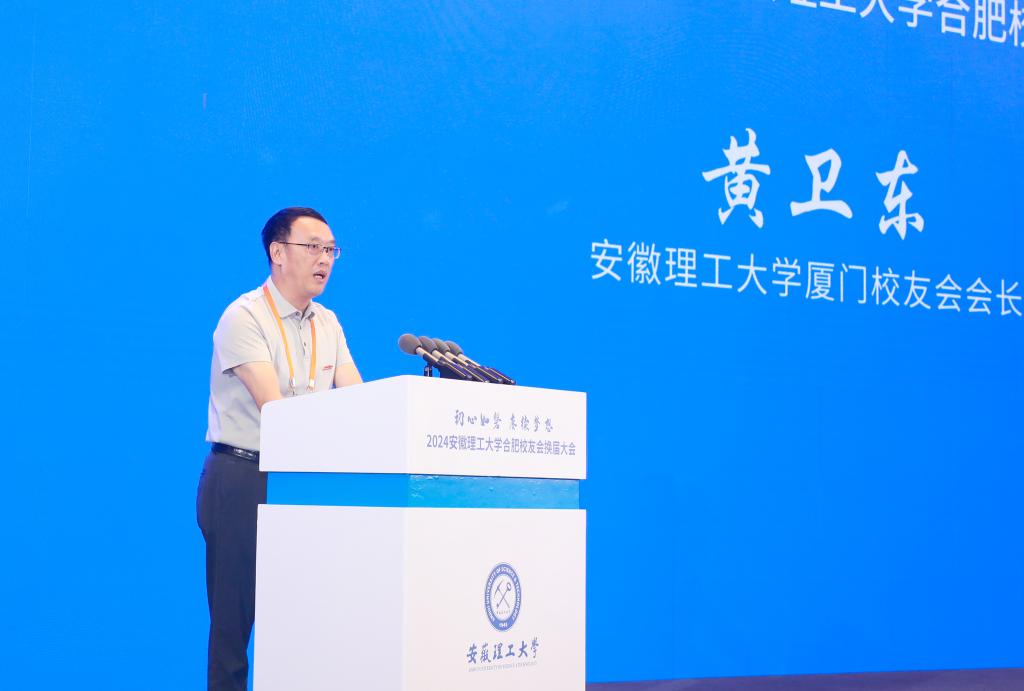 采矿85级校友、厦门校友会会长黄卫东致辞。他代表厦门校友会对大会的召开表示热烈祝贺。他表示母校近年来围绕“双一流”创建目标飞速发展,获得广泛的社会赞誉和认可。合肥校友们紧跟时代脉搏,不断开拓进取,为合肥建设、发展做出了卓有成效的贡献,为母校赢得了荣誉!厦门校友会将一如既往地和合肥及各地校友会一起,爱护母校、团结校友,扩大支持母校发展的“朋友圈”,当好校友干事创业的“助推器”,构建校友与母校发展的“共同体”,书写好助力母校“双一流”创建的“新篇章”!