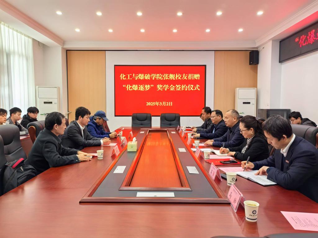 3月2日上午,“化爆逐梦”奖学金捐赠仪式在化工与爆破学院会议室举行。王先江出席仪式并讲话。