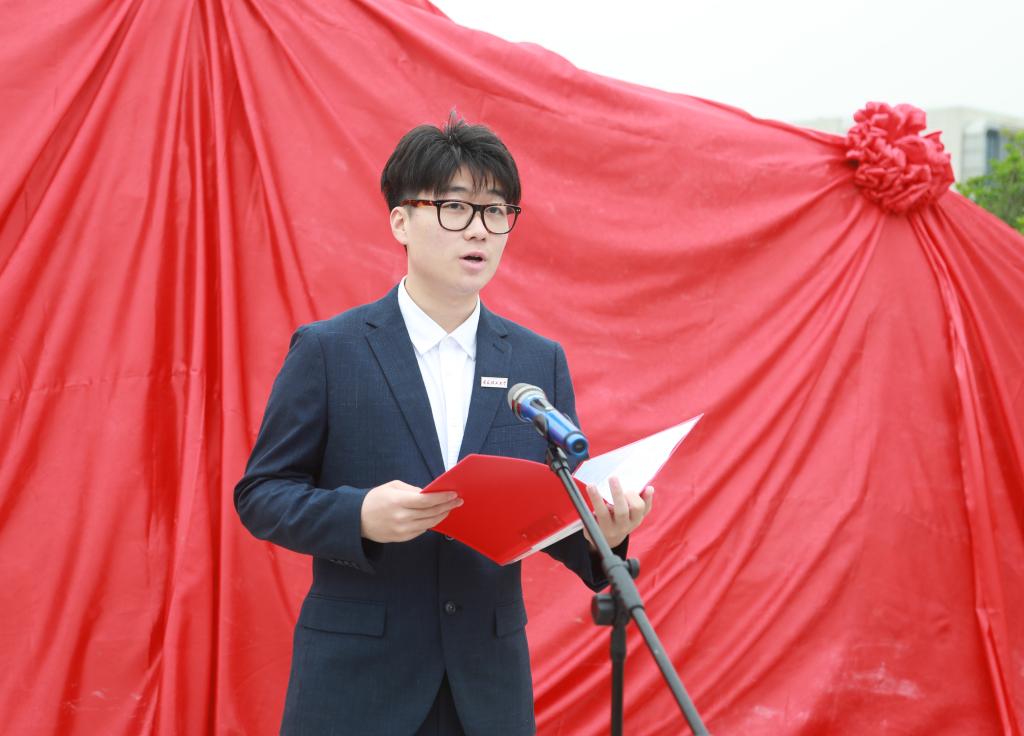仪式上,郭永存、董雨、陈桅松、徐军林共同为捐赠的文化石揭下幕布。郭永存为捐赠校友代表段云刚颁发了捐赠证书。